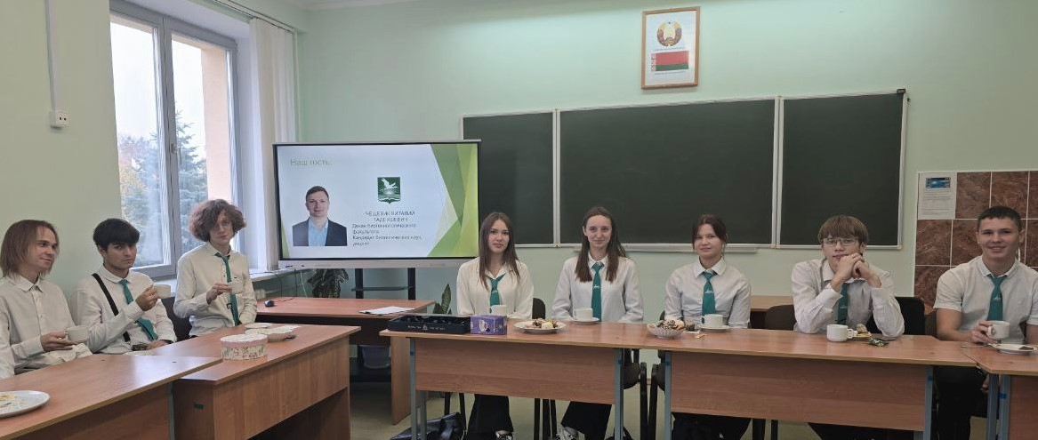 22 октября на “Чай с перспективой” учащиеся 11 "Б" класса пригласили Чещевика Виталия Тадеушевича, декана биотехнологического факультета Полесского государственного университета, кандидата биологических наук, доцента. Виталий Тадеушевич, будучи не только уважаемым ученым, но и человеком с богатым жизненным опытом, смог найти подход к каждому, развеять порой пугающие представления о мире науки и высшего образования и показать, насколько захватывающим и перспективным может быть путь в биотехнологии.