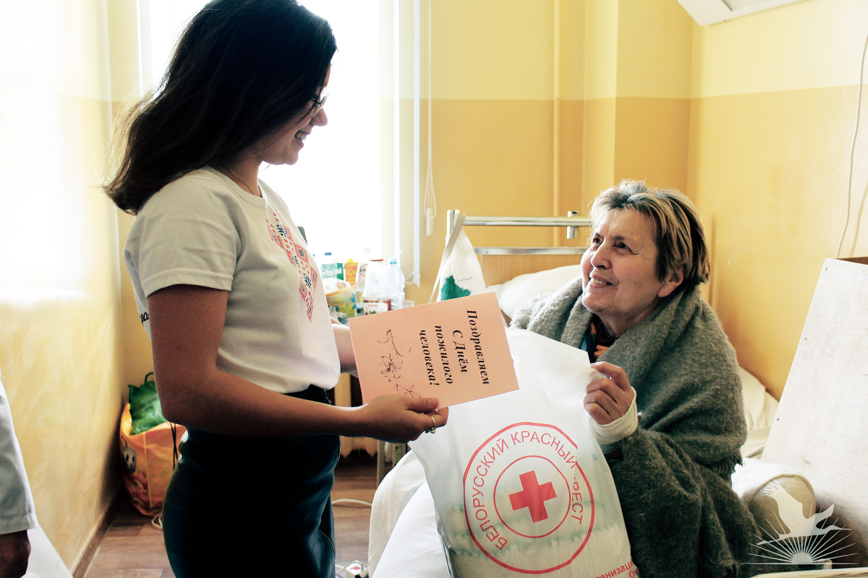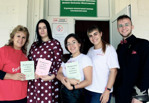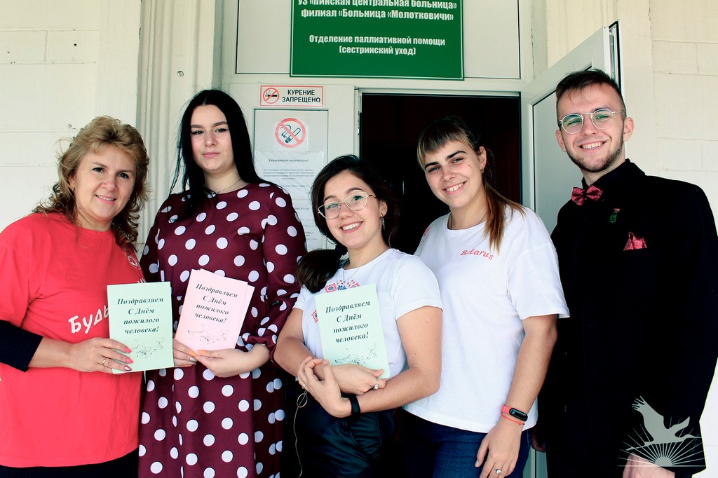 Наши активисты совместно с социально-психологической службой ПолесГУ, с волонтерами БО "Красный Крест" посетили отделение паллиативной помощи в филиале «Больница «Молотковичи», где поздравили пожилых людей с праздником, спели песни, говорили много теплых и добрых слов и в знак уважения вручили небольшие подарки и открытки, подготовленные своими руками.