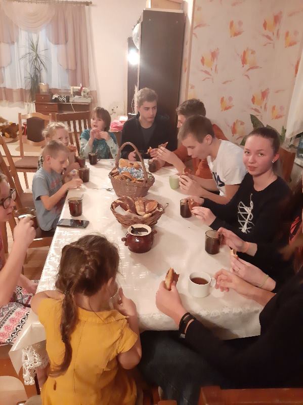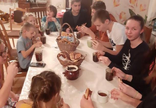 В ходе прогулки дети и студенты обменялись опытом, радостями и переживаниями. По возвращению в дом всех ждал стол с чашками тёплого чая и душевными разговорами.