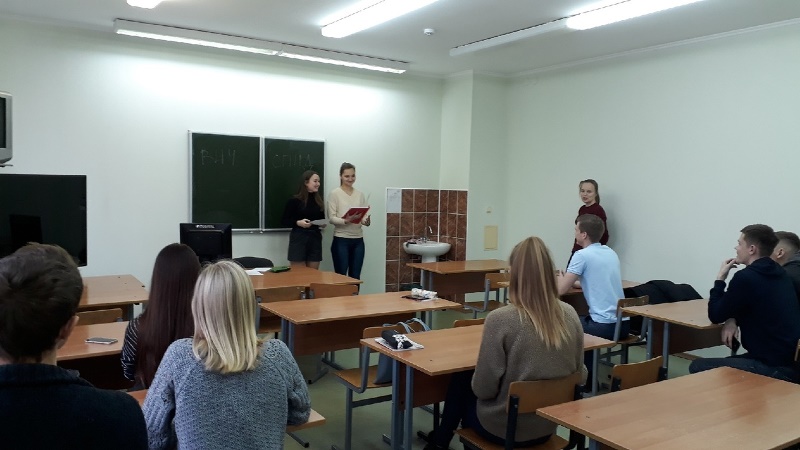 На экономическом факультете 4 декабря в группах второго курса были проведены тематические кураторские часы, включившие в себя беседу и викторину. Согласно статистики Всемирной ассоциации здравоохранения, на планете живёт более 35 млн. человек с ВИЧ, и каждый день эта цифра увеличивается на 15 тысяч. По оценкам ООН ВИЧ-инфекция занимает 5 место среди причин смертности в мире. В РБ проживает около 15 тысяч человек с ВИЧ-положительным статусом. Основные задачи, стоящие перед мировым сообществом в рамках борьбы с данным заболеванием, отражены в девиз Всемирного Дня борьбы со СПИДом, а именно: "Стремление к нулю: ноль новых случаев ВИЧ-инфекции. Ноль дискриминации. Ноль смертей вследствие СПИДа".