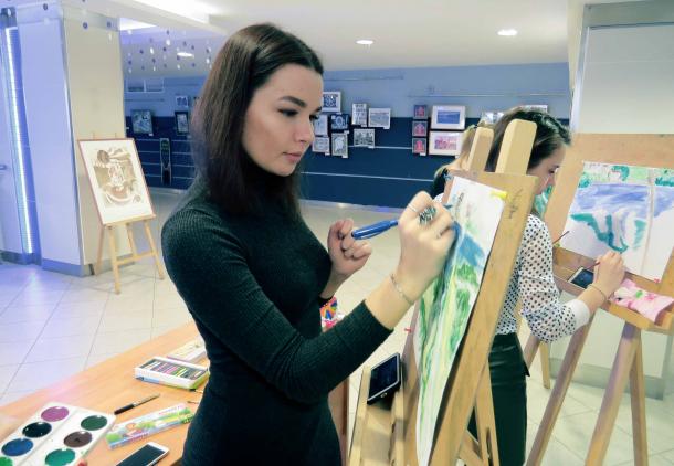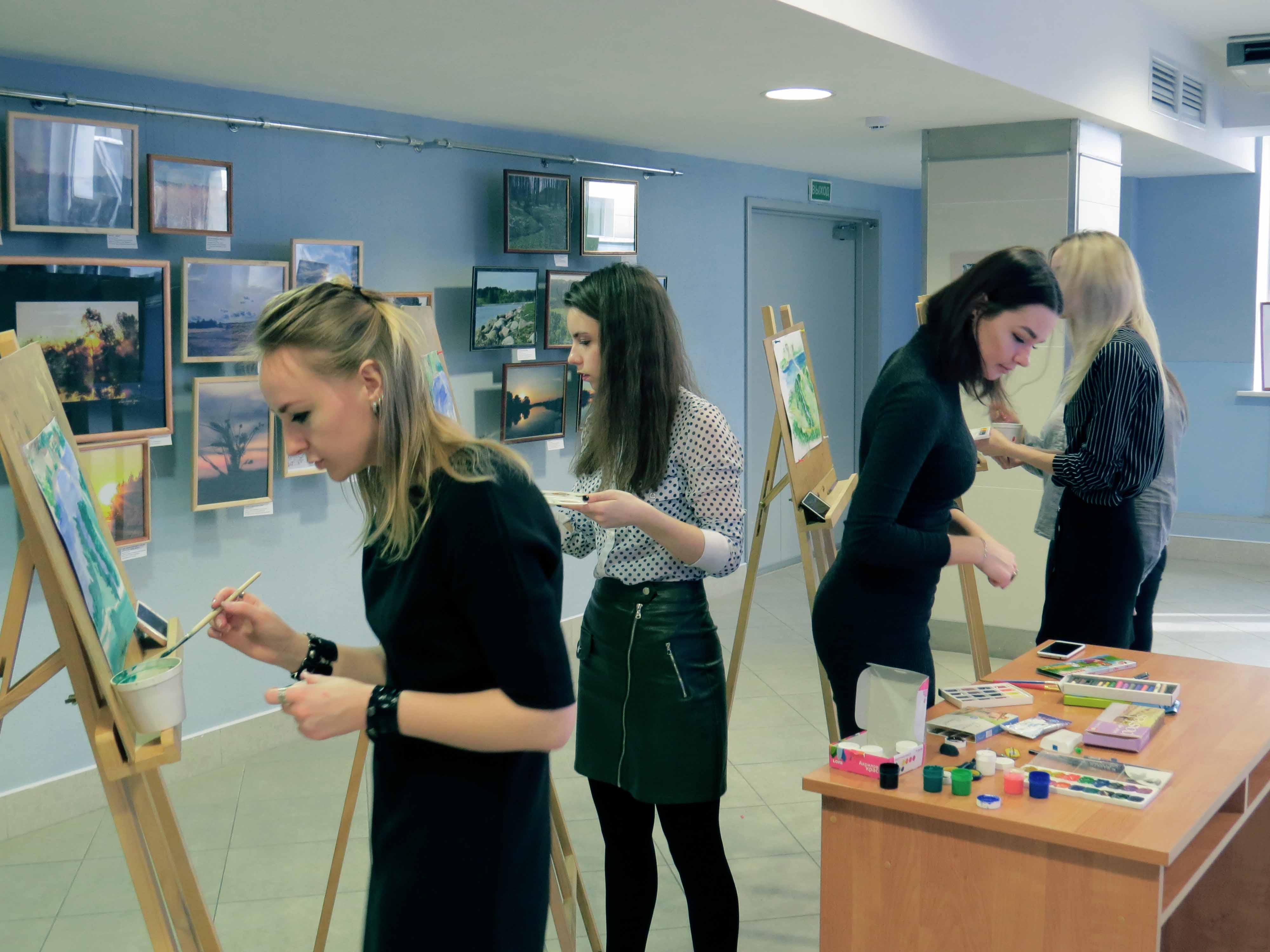 * АРТ-урок ”Палитра Полесья“, где каждый желающий смог реализовать свои способности в создании пейзажа на тему: «Палитра Полесья», провела урок, ассистент кафедры ландшафтного проектирования ПолесГУ Волкова Виктория Владимировна;