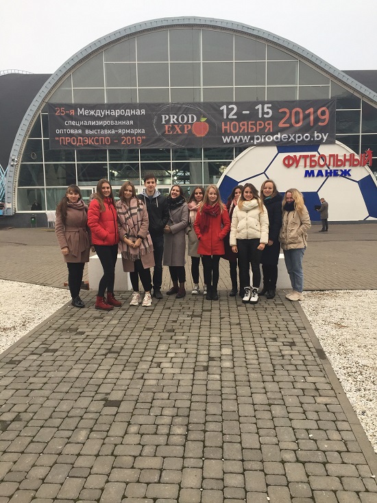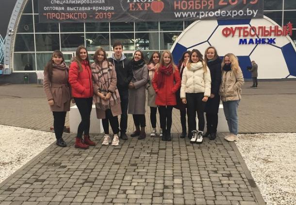 В рамках подготовки будущих специалистов в области экономики и управления на предприятии преподавателями кафедры экономики и бизнеса Шестакович Н.К. и Король А.Г. было организовано участие студентов экономического факультета в 25-й Международной специализированной выставке «ПРОДЭКСПО-2019», проходившей в Минске.