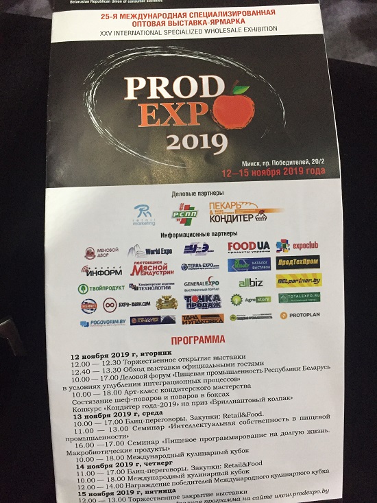 Среди центральных событий выставочного форума стал Международный симпозиум хлебопеков, на который съехались представители хлебопекарной отрасли из Беларуси, Германии, Италии, Литвы, Нидерландов, России и других стран. Самым зрелищным мероприятием юбилейного «Продэкспо-2019» стал гастрономический проект – Международный кулинарный кубок (INTERNATIONAL CULINARY CUP).