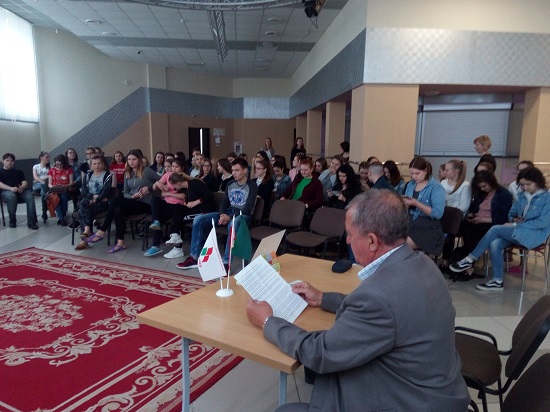 Встреча была насыщенной и интересной, студенты принимали активное участие в работе круглого стола. Состоялась демонстрация презентаций «Государственный гимн Республики Беларусь» и «Государственный флаг Республики Беларусь».