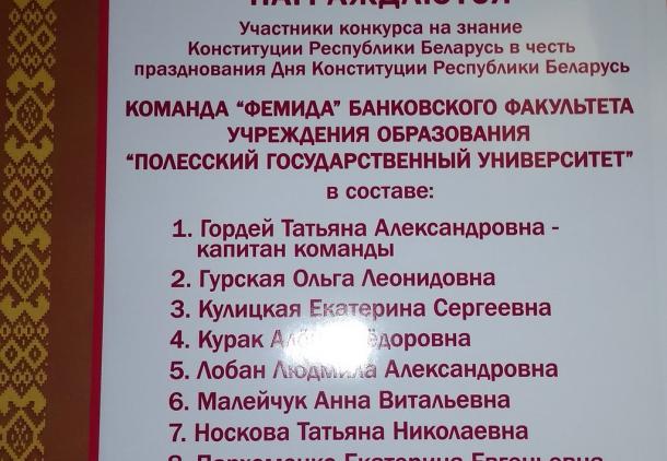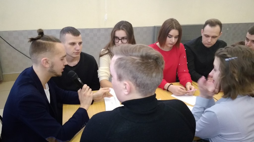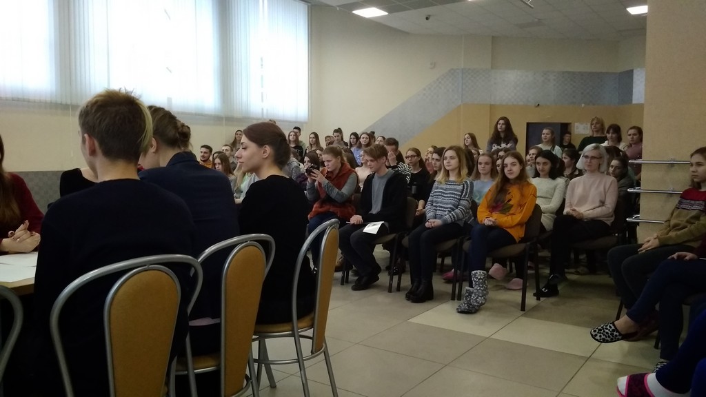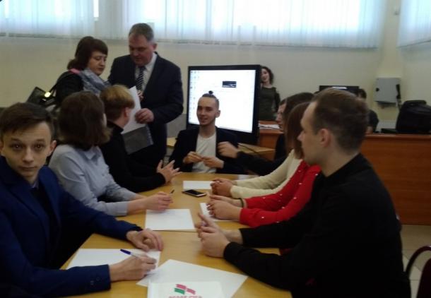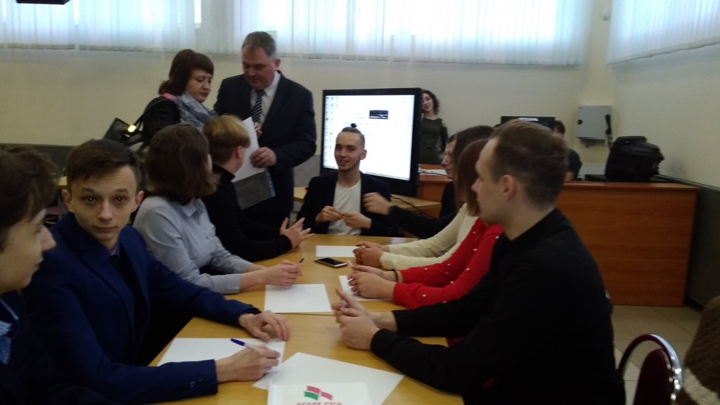 Встреча была насыщенной и интересной, студенты принимали активное участие в работе круглого стола. Состоялся открытый диалог, на котором обсуждались вопросы Конституции Республики Беларусь. Живой отклик вызвал у студентов конкурс на знание Конституции Республики Беларусь, в котором на равных выступили команды банковского и экономического факультетов.