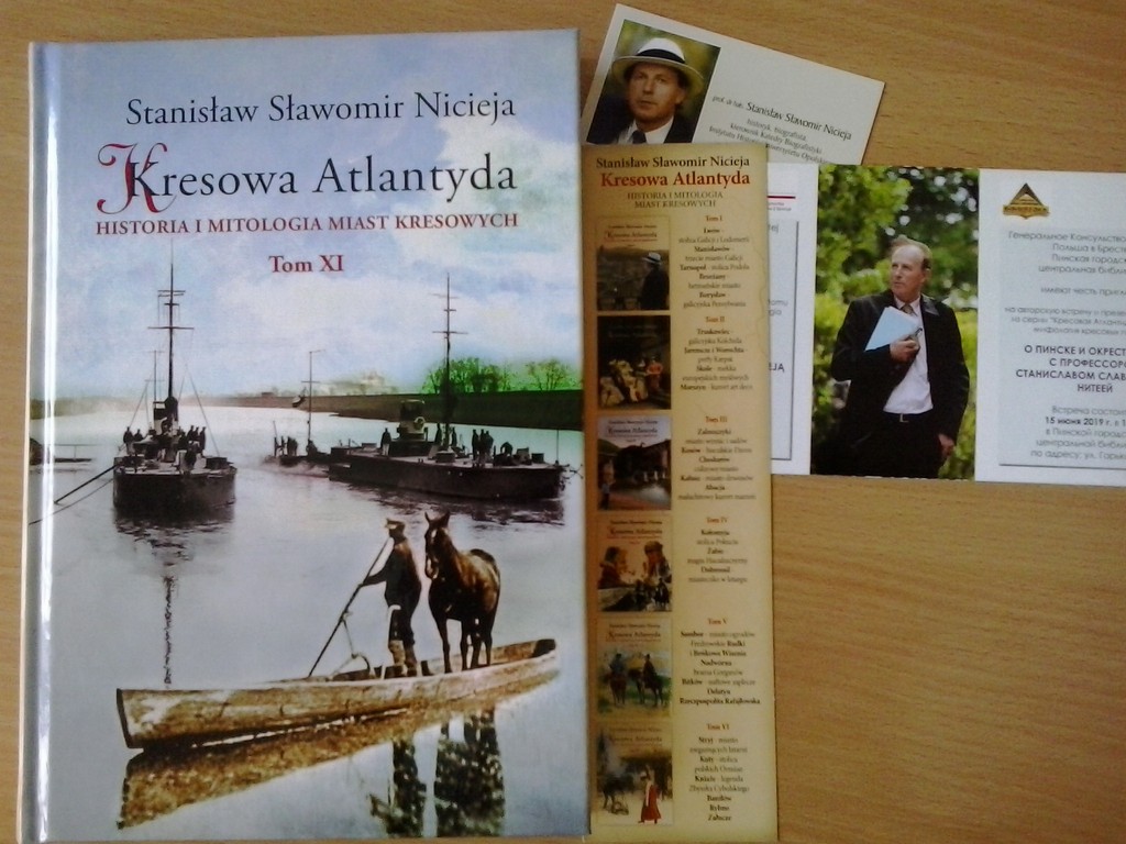15.06.2019 г. в Пинской городской центральной библиотеке по инициативе Генерального консульства Республики Польша в Бресте состоялась встреча с профессором Опольского государственного университета доктором истории Станиславом Славомиром Нитеей и презентация XI тома серии «Кресовая Атлантида. История и мифология кресовых городов». Очередной том этого многотомного издания посвящен Пинску, деревням и селам белорусского Полесья. Андрей Боболя, Матеуш Бутримович, Наполеон Орда, Роман Скирмунд, Роман Горошкевич, Луиза Бойд, Ричард Капустинский – эти имена имеют особый смысл для пинчан и жителей Полесья, эти люди оставили след на пинской земле и заслужили благодарность потомков. Пинчане, собравшиеся на встречу с автором книги, смогли получить яркие впечатления от выступления автора книги, эмоционально и увлекательно рассказавшего о подготовке издания. Новая, прекрасно оформленная и иллюстрированная книга, созданная с большой любовью, безусловно, найдет своего читателя.