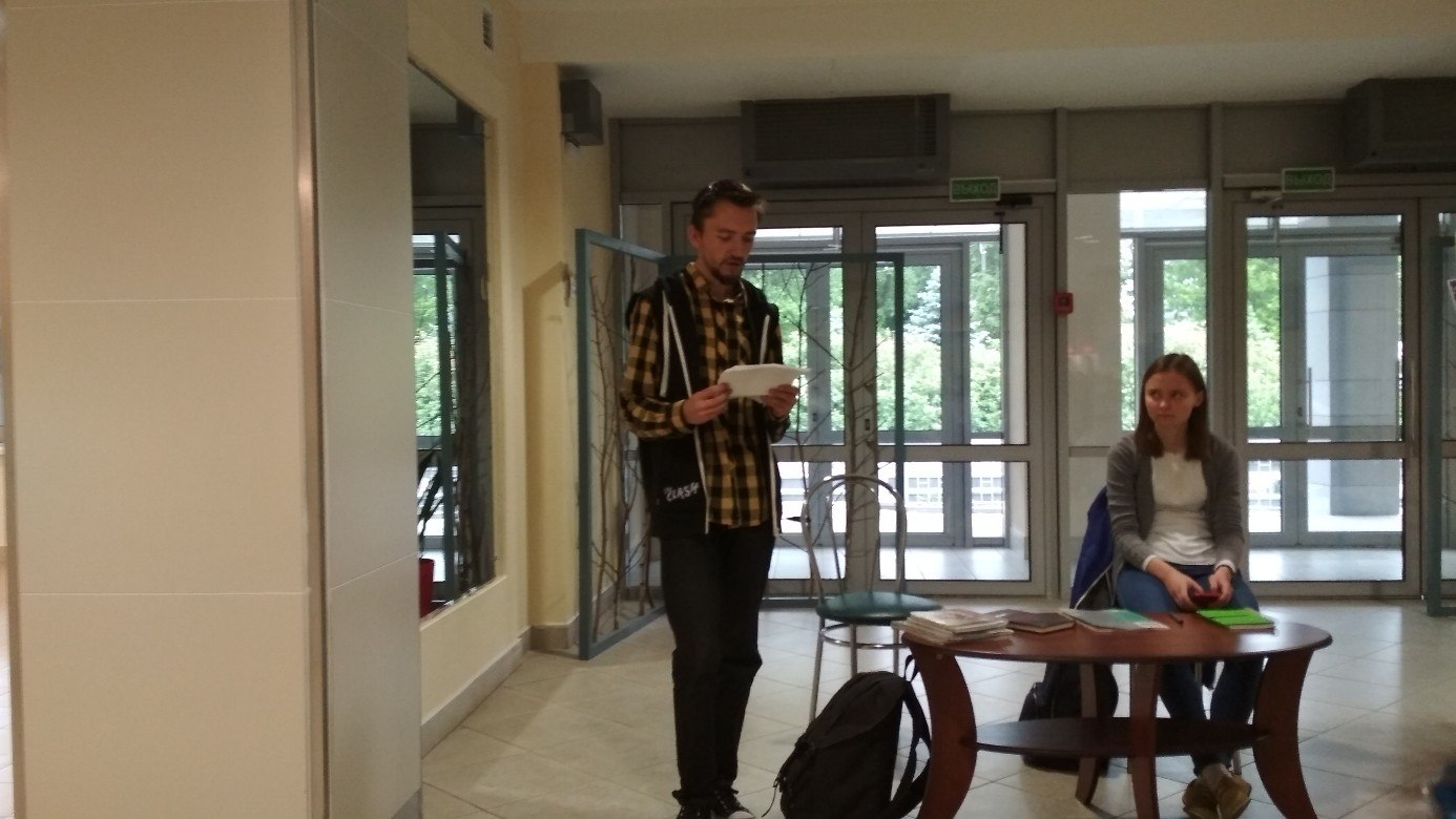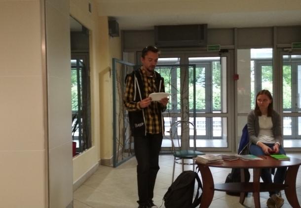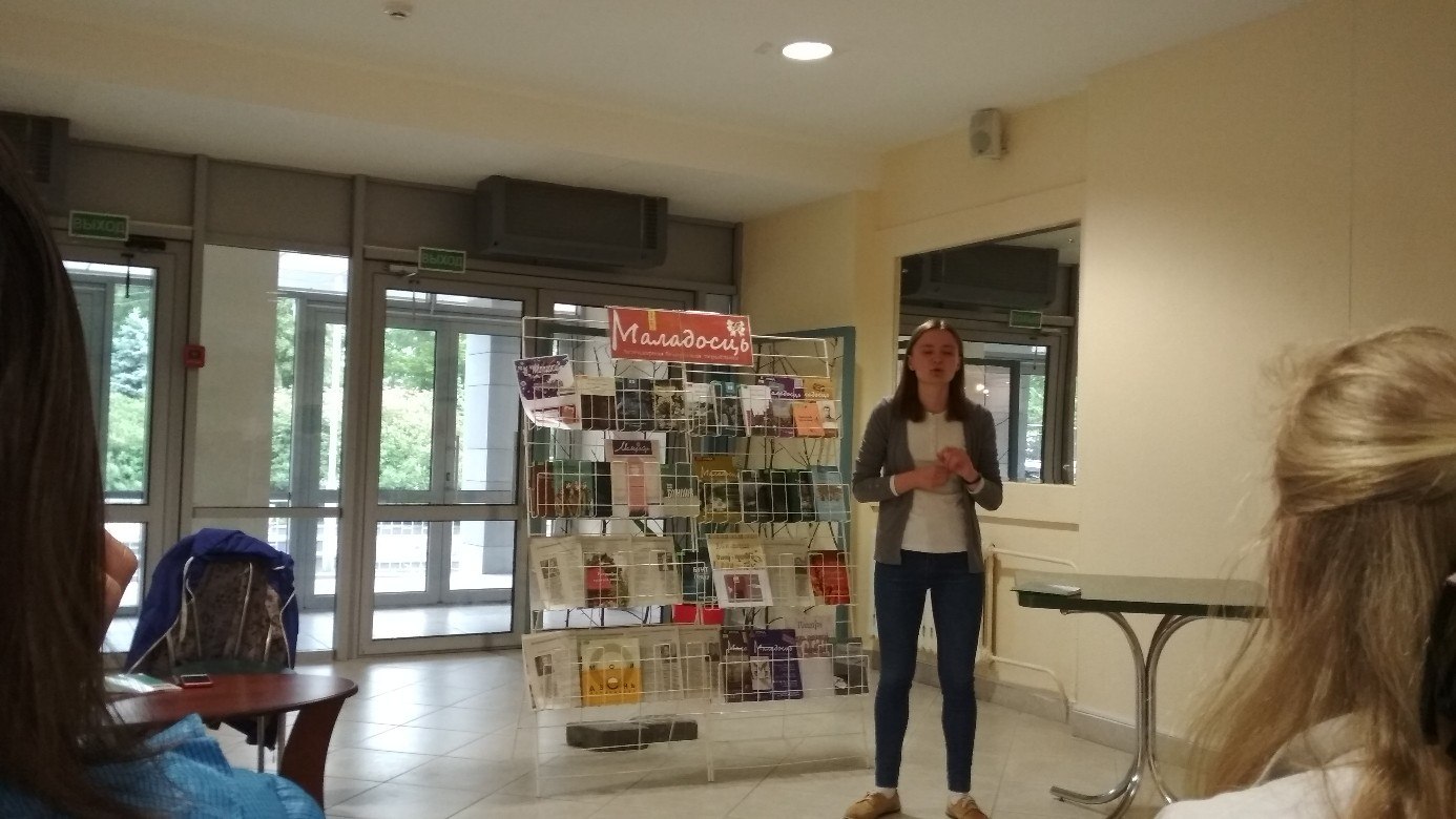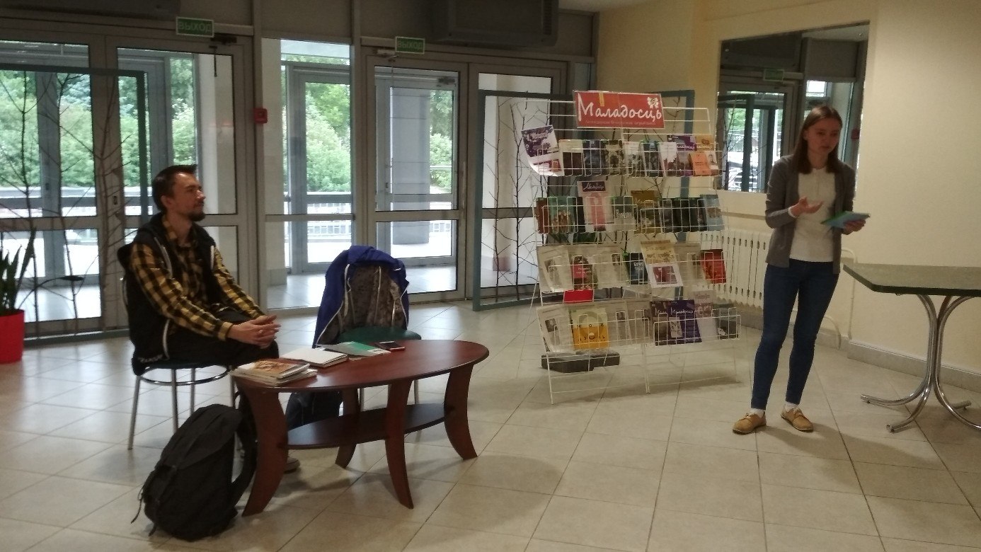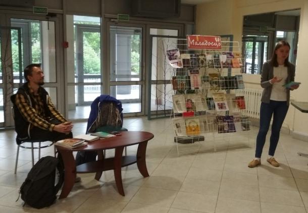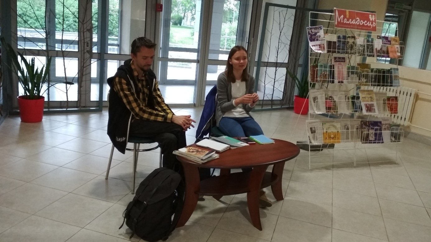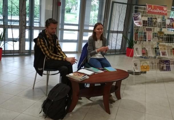 16 мая в университетском клубе состоялась творческая встреча студентов с представителями журнала «Маладосць» Дмитриеем Викторочем Шулюком и Мариной Викторовной Яромко, организованная сотрудниками отдела воспитательной работы с молодёжью и библиотекой ПолесГУ. Дмитрий Викторович и Марина Викторовна рассказали о журнале, о истории его возникновения и деятельности, об основных рубриках и направлениях работы. На встрече обсуждалась современная белорусская поэзия и проза. Дмитрий Викторович познакомил студентов со своими творческими произведениями.