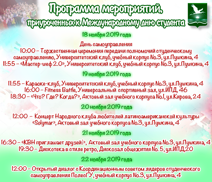 17.11.2019 С Международным Днем студента! (анонс мероприятий)