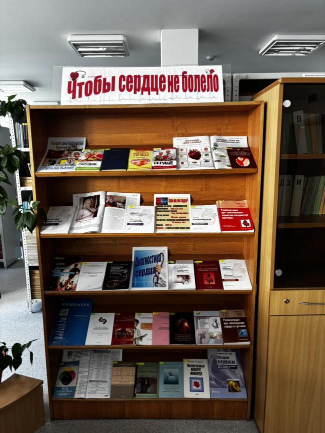 К этому дню на абонементе учебной литературы (ауд. 3214, учебный корпус №3, ул. Пушкина, 4) подготовлена тематическая книжная выставка «Чтобы сердце не болело». На книжной экспозиции представлена научно-популярная медицинская литература и статьи из журналов с советами по профилактике сердечных заболеваний.