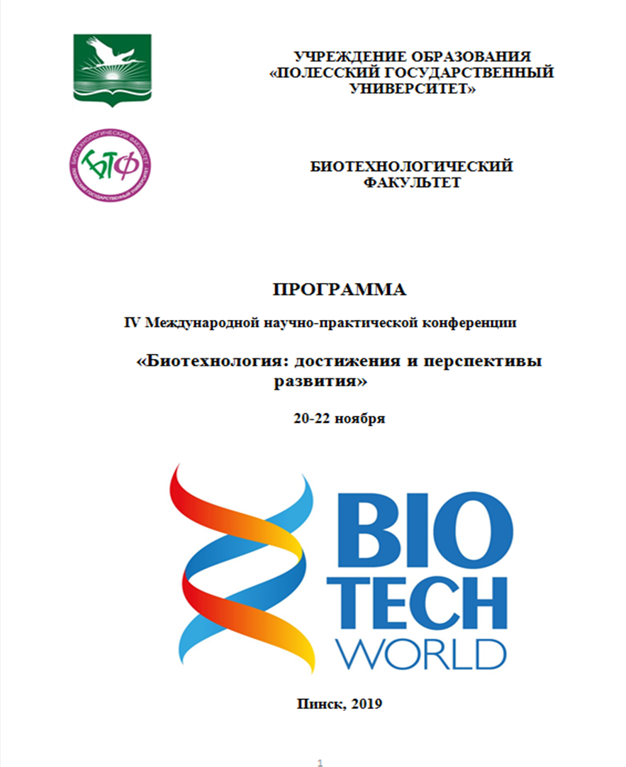20-21.11.2019 IV Международная научно-практическая конференция «Биотехнология: достижения и перспективы развития»