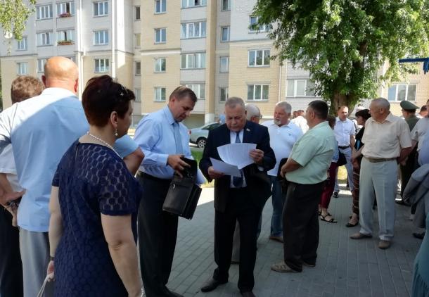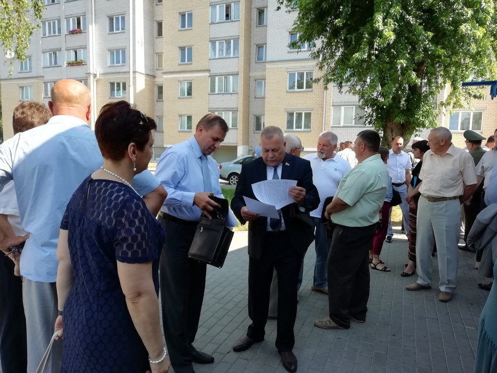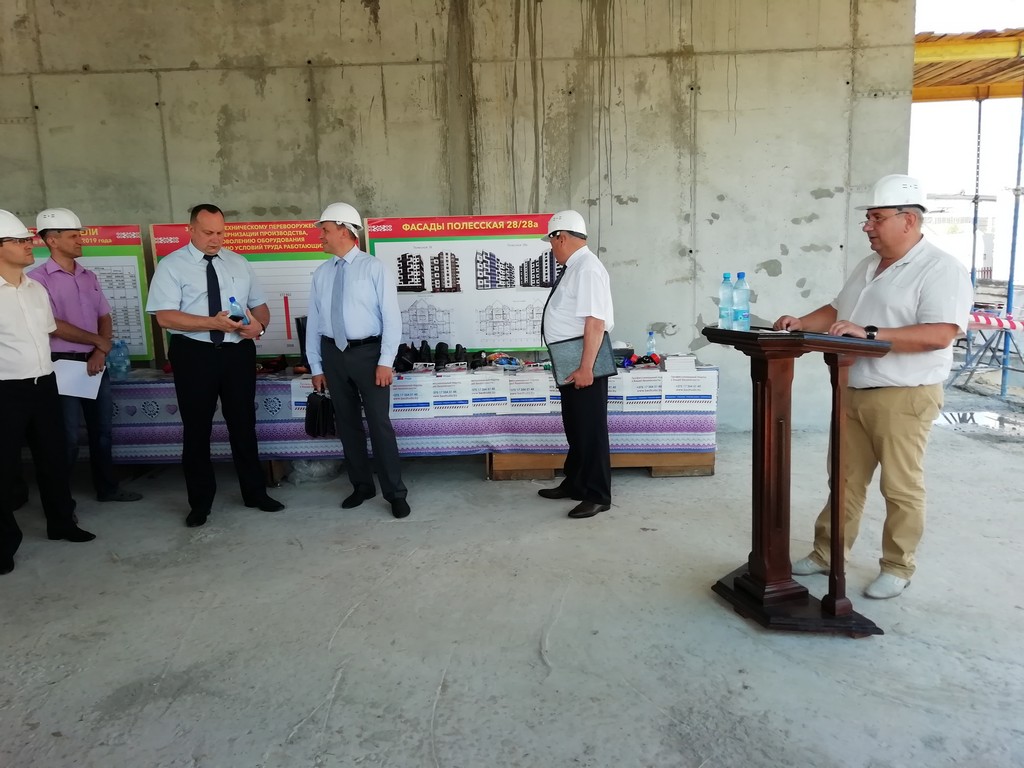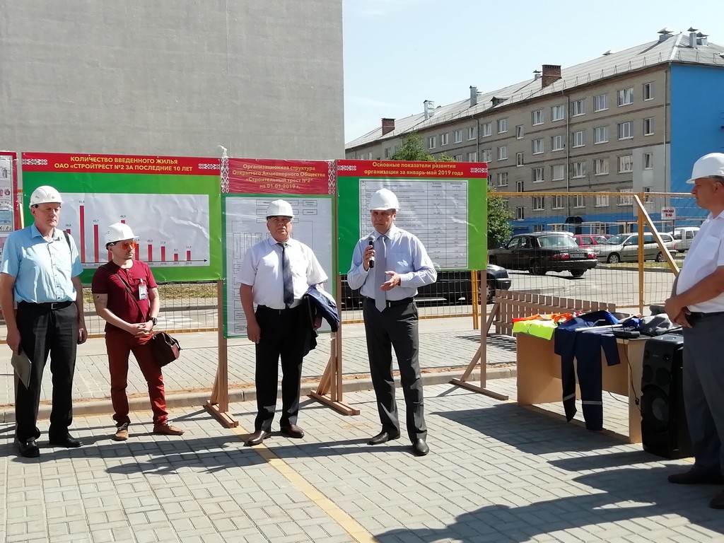 Открыл выездное заседание на строительной площадке Стройтреста N 2 по ул.Рокоссовского Первый заместитель председателя Пинского горисполкома Самолазов М.Н., который отметил актуальность и большое значение мониторинга вопросов обеспечения безопасности в учреждениях и на предприятиях города. Депутаты ознакомились с особенностями мероприятий по предупреждению производственного травматизма при производстве строительных и строительно-монтажных работ в городе, поделились опытом в совершенствовании системы управления охраны труда.