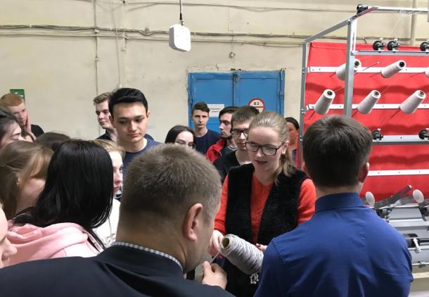 Студенты в ходе экскурсии ознакомились с деятельностью предприятия, организацией и технологией производства пряжи полушерстяной, штапельной и полиакрилонитрильной (ПАН) на прядильной фабрике.