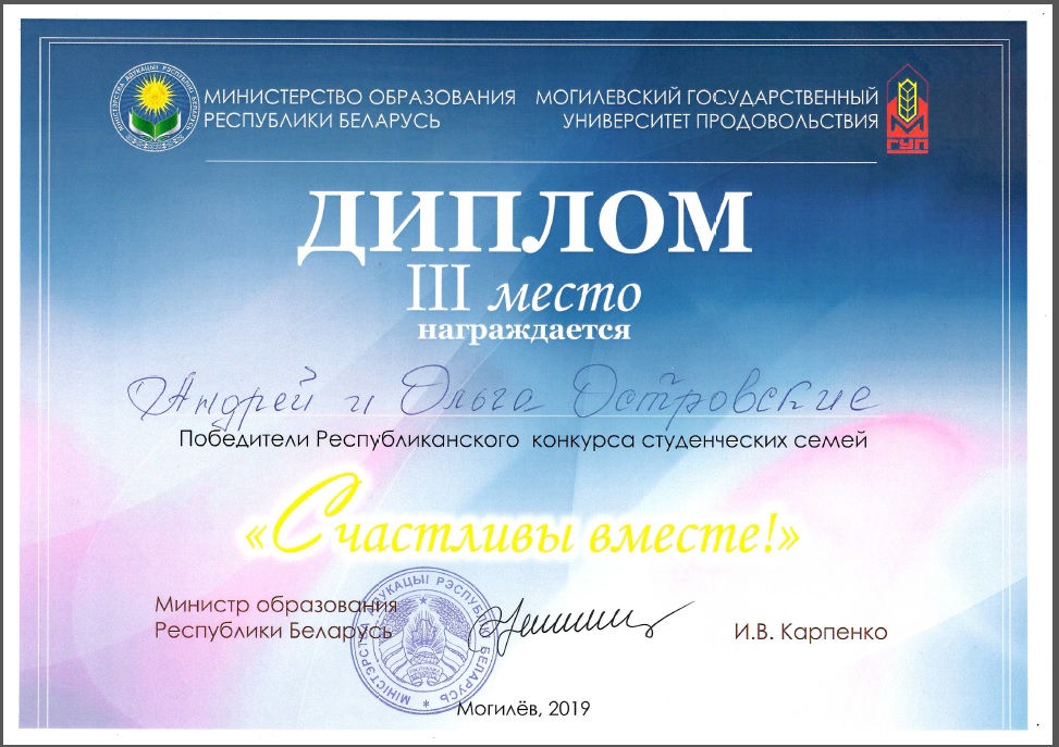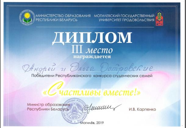 В Могилевском государственном университете продовольствия студенческая семья Островских ПолесГУ заняла III место в республиканском конкурсе  «Счастливы вместе».