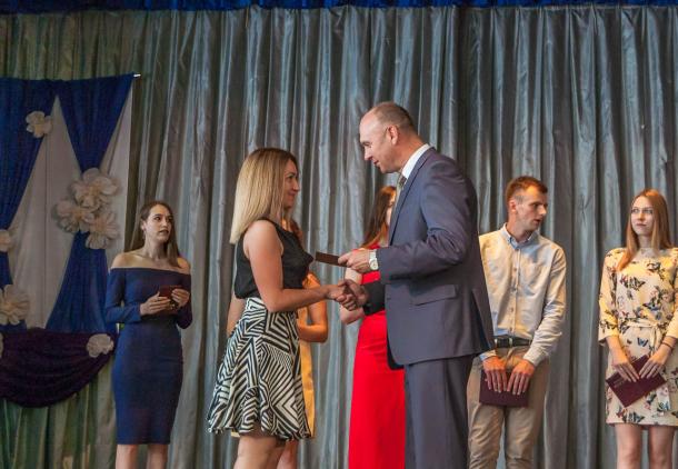 Почетный гость праздника – председатель Пинского горисполкома Иван Ребковец приветствовал ребят и вручил дипломы выпускникам магистратуры по специальностям «Экономика», «Маркетинг», «Бизнес-администрирование».
