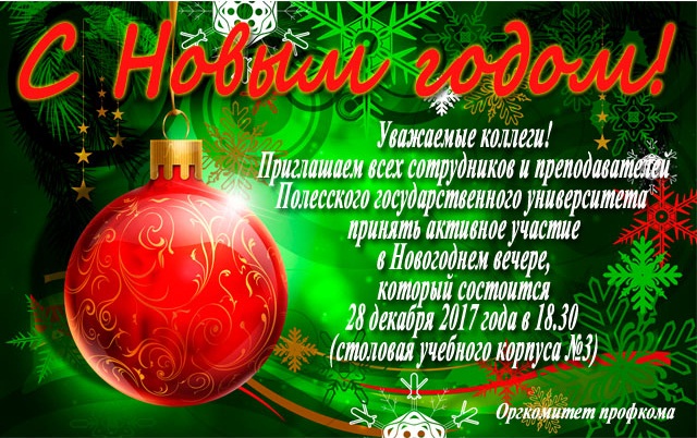 28 декабря 2017 года в 18.30 состоится Новогодний вечер для сотрудников и преподавателей Полесского государственного университета