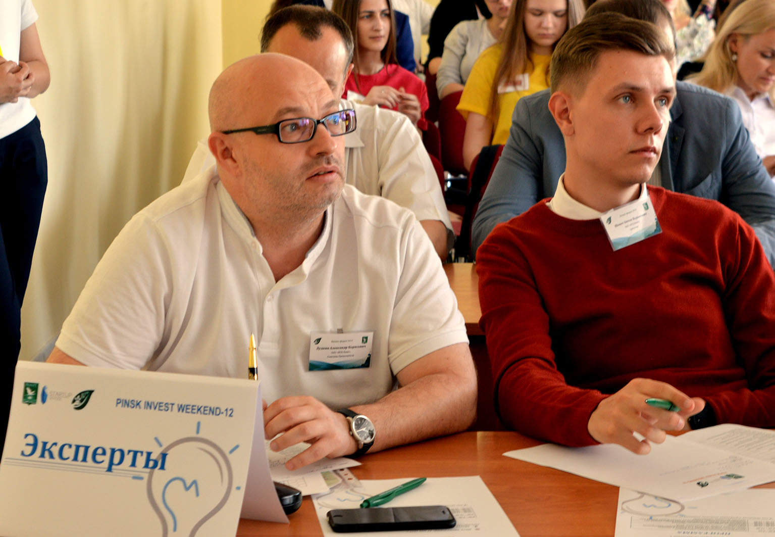 Экспертами на конкурсе инновационных проектов молодых разработчиков стали: Серков Михаил Николаевич - генеральный директор ГО «Управляющая компания холдинга «Концерн Брестмясомолпром», Карлюк Павел Данилович - директор ОДО «Металпромсервис, Богович Дмитрий Александрович– начальник ЦБУ «Белинвестбанк» г. Пинск, Волосюк Раиса Григорьевна - директор филиала 121 ОАО «АСБ «Беларусбанк», Меша Владимир Григорьевич – начальник филиала областного управления «Беларусбанк», Водчиц Виктор Григорьевич - управляющий дополнительным офисом в г.Пинске «БПС-Сбербанк», Гриневич Олег Григорьевич - начальник отдела обслуживания средних и малых клиентов «Приорбанк», Романчук Виталий Николаевич - управляющий ЦБУ 506 ОАО «Приорбанк» в г. Пинске, Дудкин Александр Борисович – советник Председателя ЗАО «БСБ Банк», Шемет Антон Вадимович - ЗАО «БСБ Банк», Пасовец Сергей Михайлович – директор ООО «Сталкер», Перец Сергей Николаевич - главный энергетик ОАО «Пинский мясокомбинат», Микулич Алексей Васильевич -
