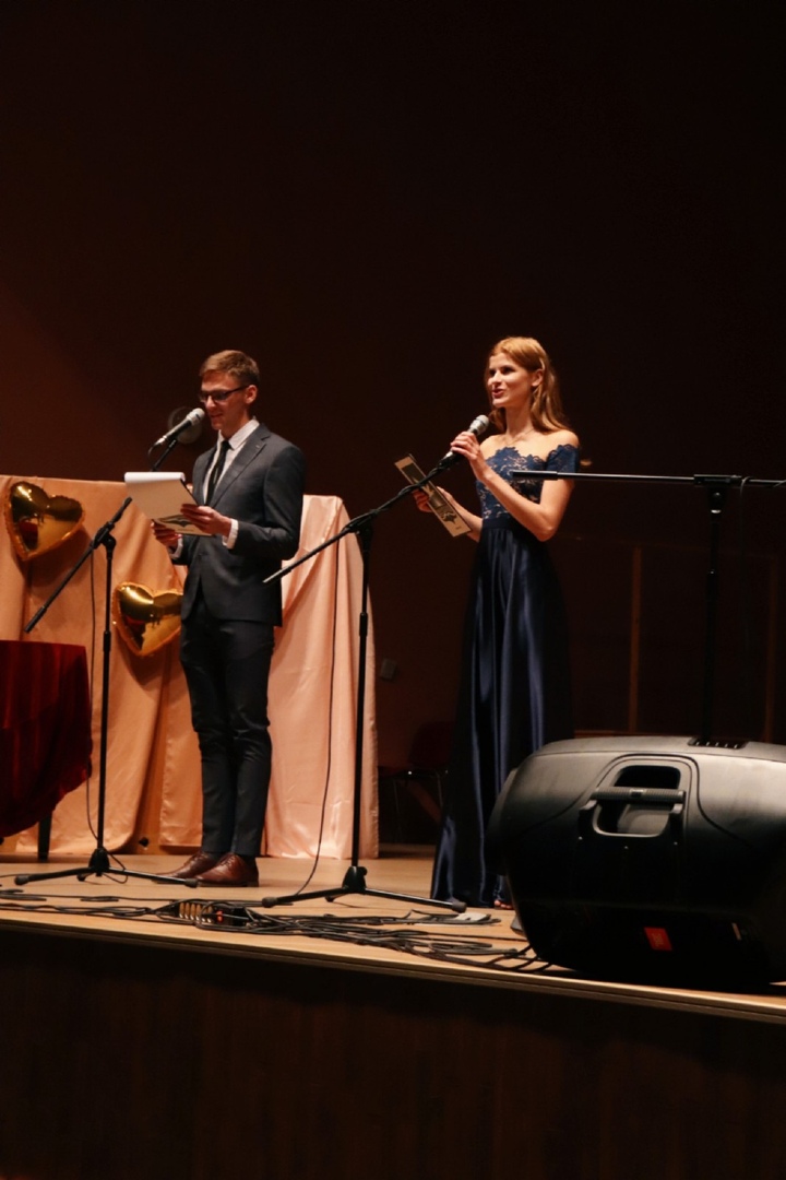 Отдельно хочется отметить ведущих программы Сашу Переплечинского и Риту Поливко, студентов гр. 17ЭУП-1. Своей красотой, органичностью и интеллигентностью они задали тон всему концерту.