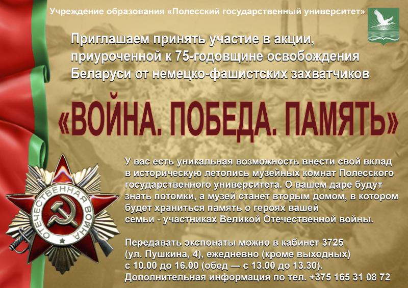 18-19.04.2019 Полесский государственный университет приглашает к участию в работе VIII Международной научно-практической конференции ”ЗДОРОВЬЕ ДЛЯ ВСЕХ“, посвященной 10-летию научно-исследовательской лаборатории лонгитудинальных исследований.