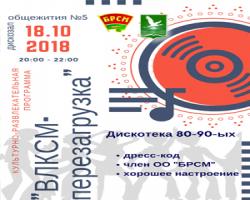Культурно-развлекательная программа "ВЛКСМ - перезагрузка", посвящённая 100-летию ВЛКСМ (Всесоюзный Ленинский коммунистический союз молодёжи). «Дискотека СССР» — это музыка высокой жизненной энергии, позитива и прекрасного настроения