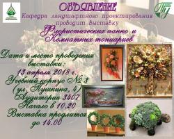 13.04.2018 Кафедра ландшафтного проектирования приглашает всех желающих на выставку флористических панно и комнатных топиариев.