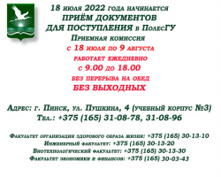 ПРИЁМ ДОКУМЕНТОВ ДЛЯ ПОСТУПЛЕНИЯ в ПолесГУ