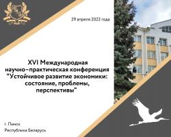 "Устойчивое развитие экономики: состояние, проблемы, перспективы", которая состоится 29 апреля 2022 года в учреждении образования "Полесский государственный университет".