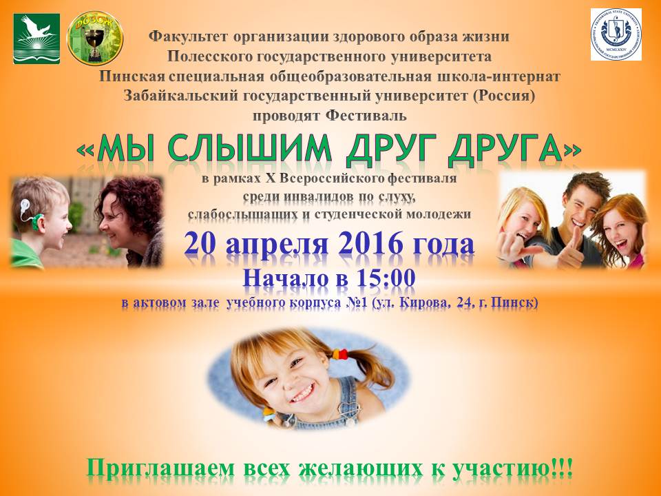 Уважаемые преподаватели, сотрудники, студенты и лицеисты! В рамках 10-летия Полесского государственного университета и Года культуры предлагаем вашему вниманию дебют студенческого театра. Ждем вас 6 апреля 2016 года в 16.00 в актовом зале учебного корпуса №3 (ул.Пушкина, 4)