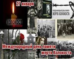 27 января отмечается Международный день памяти жертв Холокоста, провозглашенный резолюцией Генеральной ассамблеи ООН от 1 ноября 2005 года.