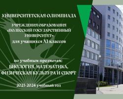 Уважаемые учащиеся XI классов! Предлагаем Вам принять участие в Университетской олимпиаде по учебным предметам: «Биология», «Математика», «Физическая культура и спорт», победители которой (дипломы I, II, III степени заключительного этапа) имеют право на зачисление в Учреждение высшего образования «Полесский государственный университет» БЕЗ ВСТУПИТЕЛЬНЫХ ИСПЫТАНИЙ НА СООТВЕТСТВУЮЩИЕ СПЕЦИАЛЬНОСТИ: