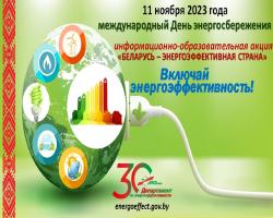 С 8 по 11 ноября 2023 года Департамент по энергоэффективности проводит республиканскую информационно-образовательную акцию «Беларусь – энергоэффективная страна» под девизом «Включай энергоэффективность!». Она приурочена к международному Дню энергосбережения, который ежегодно отмечается 11 ноября.