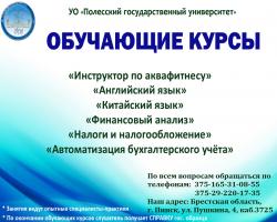 Факультет дополнительного образования приглашает на обучающие курсы: "Инструктор по аквафитнесу", "Английский язык", "Китайский язык", "Финансовый анализ", "Налоги и налогообложение", "Автоматизация бухгалтерского учета".
