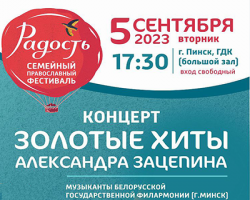 В рамках семейного православного фестиваля «РАДОСТЬ» приглашаем на концерт «Золотые хиты Александра Зацепина» (музыканты Белорусской государственной филармонии).