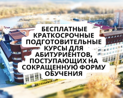 Сообщаем Вам о том, что 26 и 27 июля по адресу ул. Пушкина, 4 (учебный корпус № 3) состоятся краткосрочные подготовительные курсы для абитуриентов, поступающих на сокращенную форму обучения.