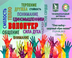 17-19 апреля в Полесском государственном университете состоится VIII Международный фестиваль волонтерских команд ”Наш выбор – здоровый образ жизни!“. Целью фестиваля является пропаганда и развитие волонтерского движения, повышение социальной активности молодежи, а также объединение усилий, направленных на содействие формирования здорового образа жизни в молодежной среде.