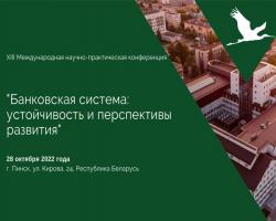 Приглашаем Вас принять участие в XIII Международной научно-практической конференции по вопросам финансово-банковской экономики «Банковская система: устойчивость и перспективы развития», которая состоится 28 октября 2022 года в учреждении образования "Полесский государственный университет".